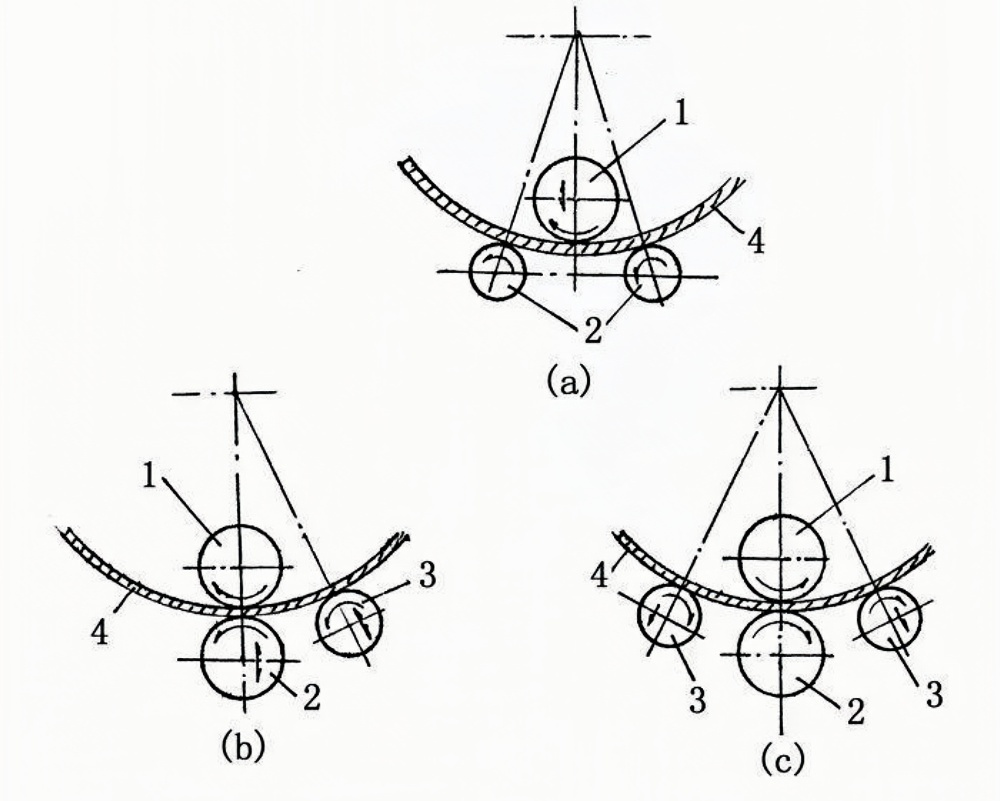 Sin embargo, la variación en el número de rodillos resulta en mecanismos de paso distintos entre las máquinas de rodillos de tres y cuatro rodillos.