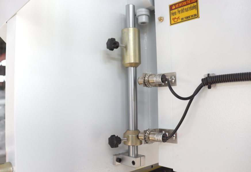. Según el grosor de la placa plegable y el tamaño de la abertura en V del molde inferior, ajuste la distancia del recorrido del deslizador. Esto se puede hacer a través del botón en la caja eléctrica para controlar la longitud de extensión del pistón, ajustando así el recorrido del deslizador.
