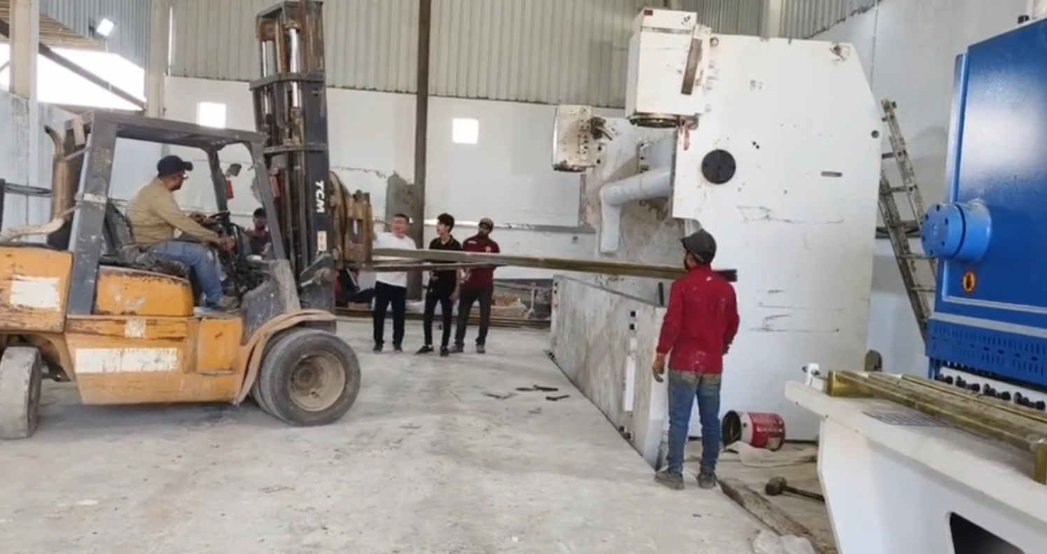 Después de completar la instalación de la máquina de cizallamiento, el técnico instaló la máquina de flexión hidráulica, incluyendo la pared de trabajo, el banco de trabajo, la parte del motor y la parte hidráulica de la máquina de instalación. Finalmente, instalaron el molde de la máquina y ajustaron el ángulo de flexión y la rectitud de la máquina de flexión.
