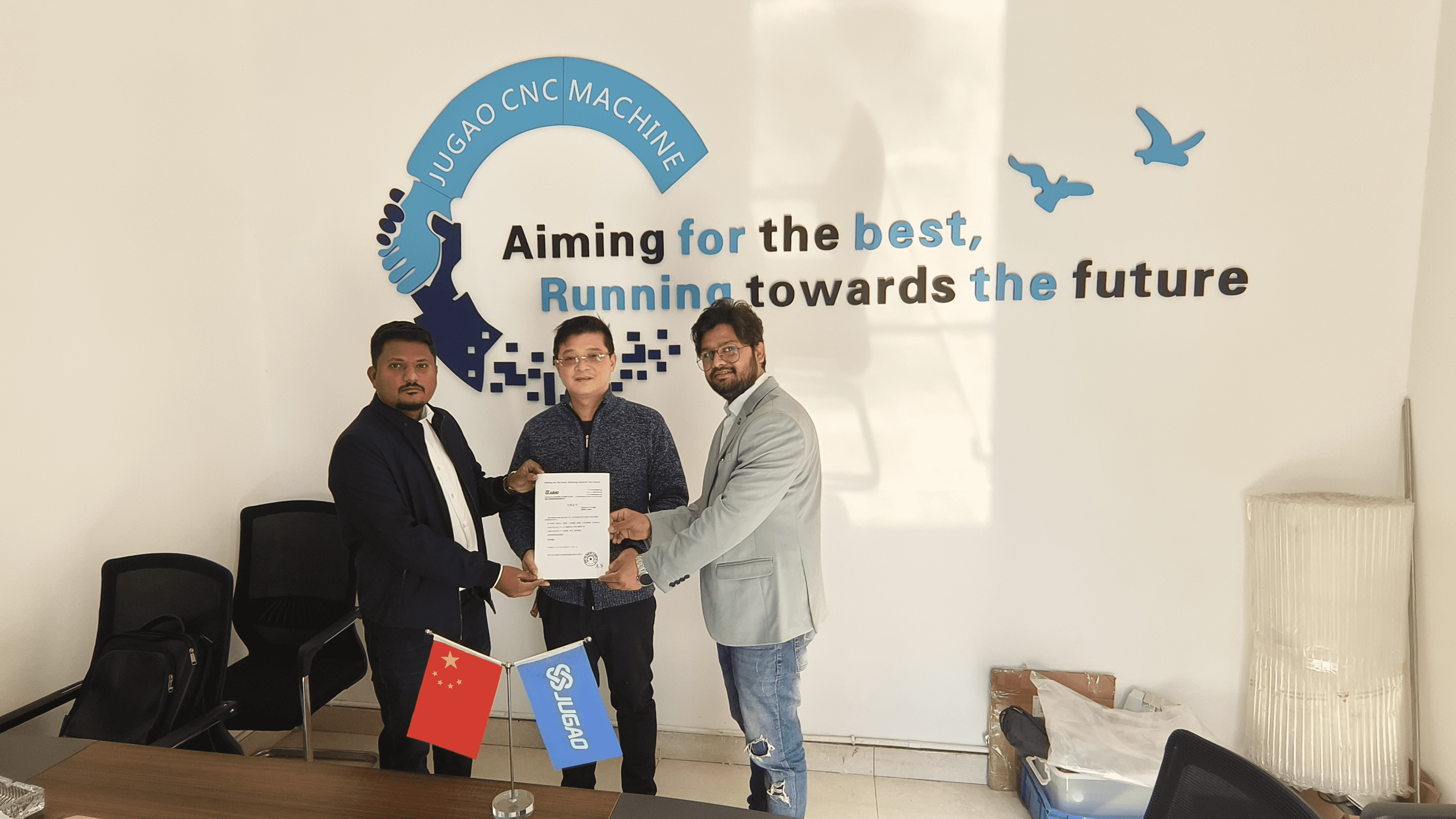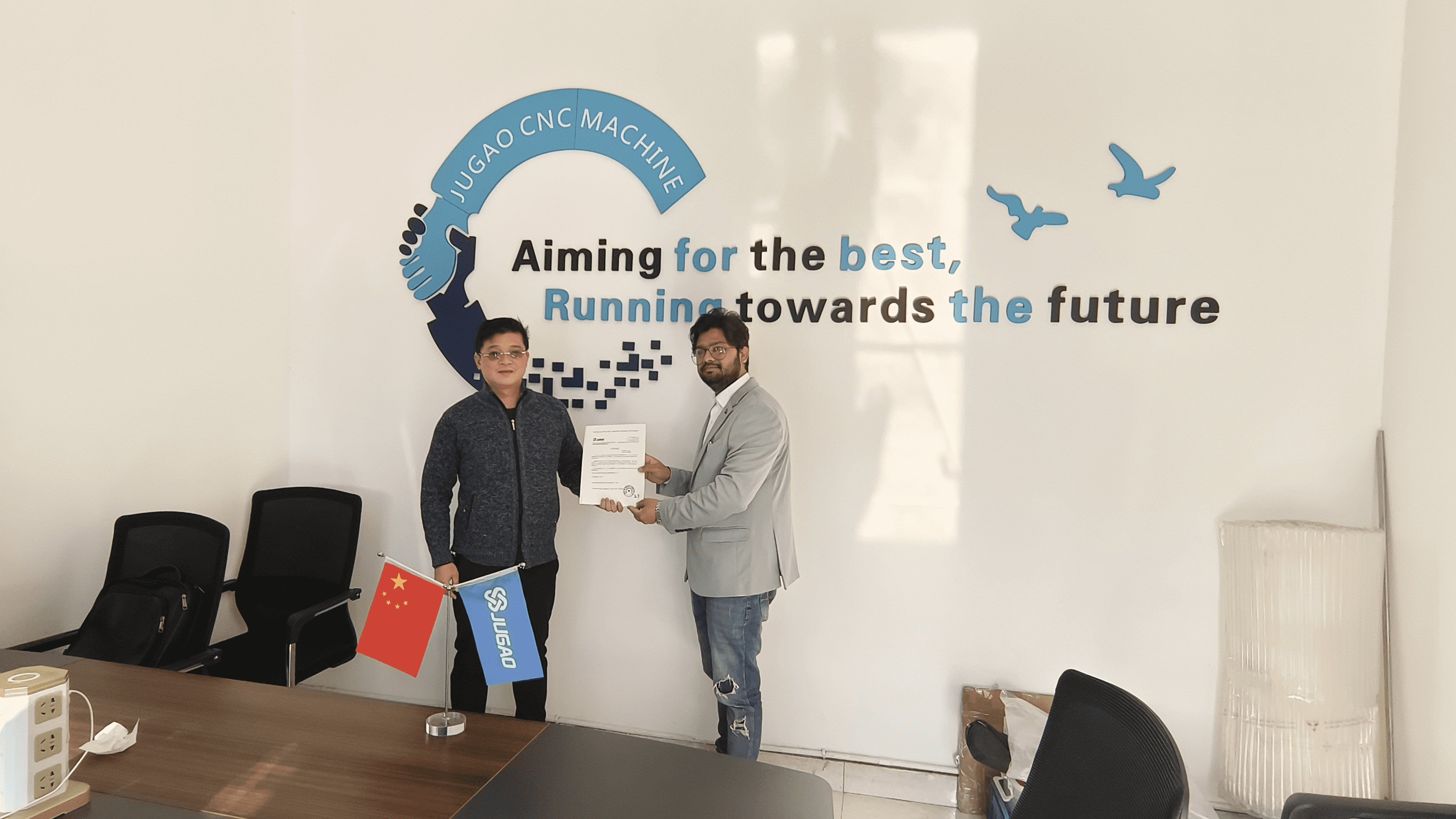 'Estamos muy contentos de llegar a una cooperación con la fábrica JUGAO.' Dijo el Sr. Vikra, 'Creemos que a través de los esfuerzos conjuntos de ambas partes, podemos llevar los centros de doblado CNC y las máquinas de doblado CNC a nuevas alturas en el mercado indio.'